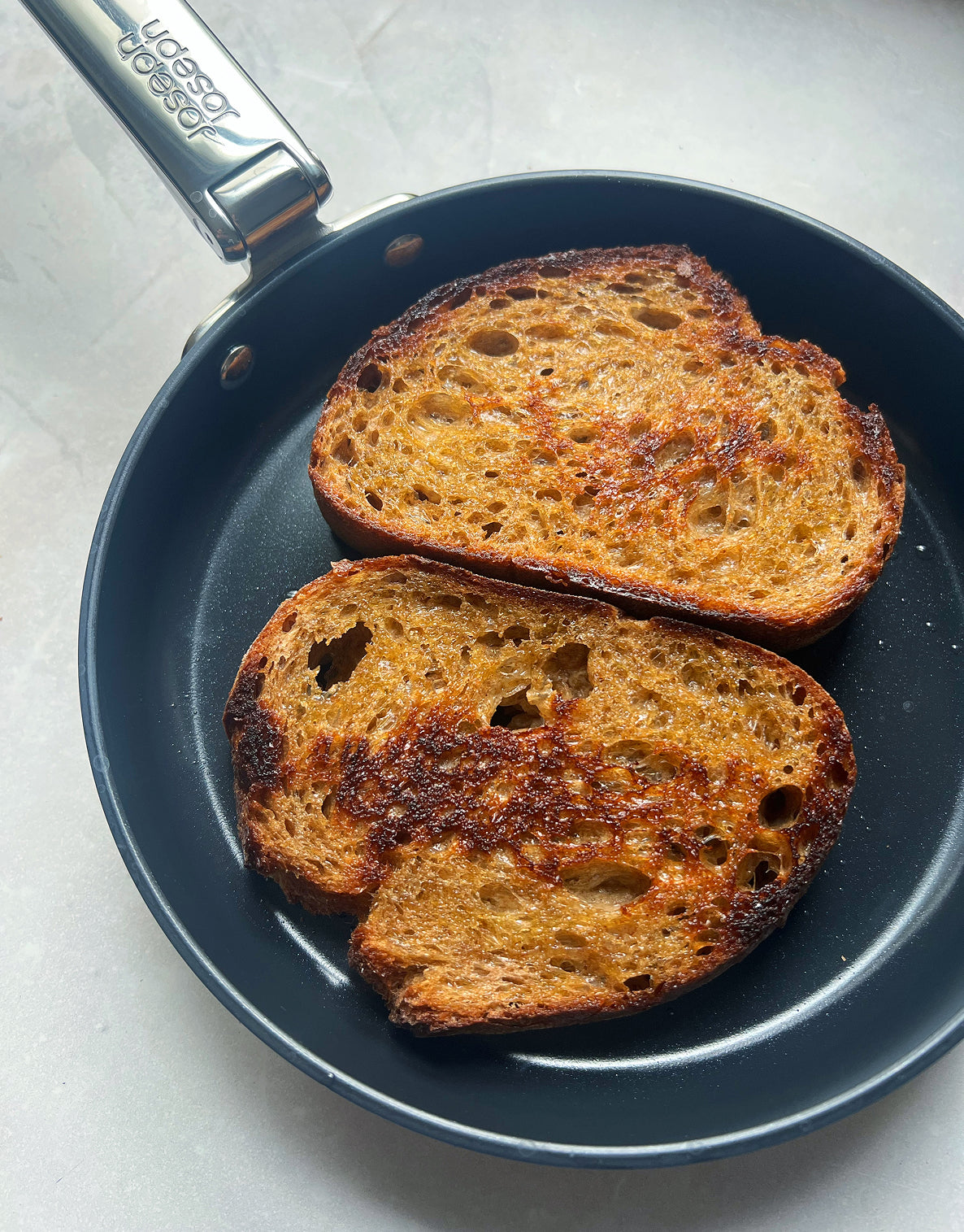 - Step 1Drizzle the bread with a little olive oil on both sides and place in a frying pan over a medium heat. Toast on both sides and remove from the pan.
