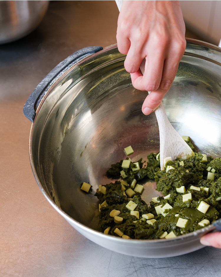 - Step 3In a separate bowl, combine the flour, matcha powder, bicarbonate of soda, and salt and mix well. Add the dry ingredients to the wet and stir just until combined and fold in the chocolate chips. Cover with clingfilm and chill in the fridge for 15 minutes, until cold enough to roll into balls.