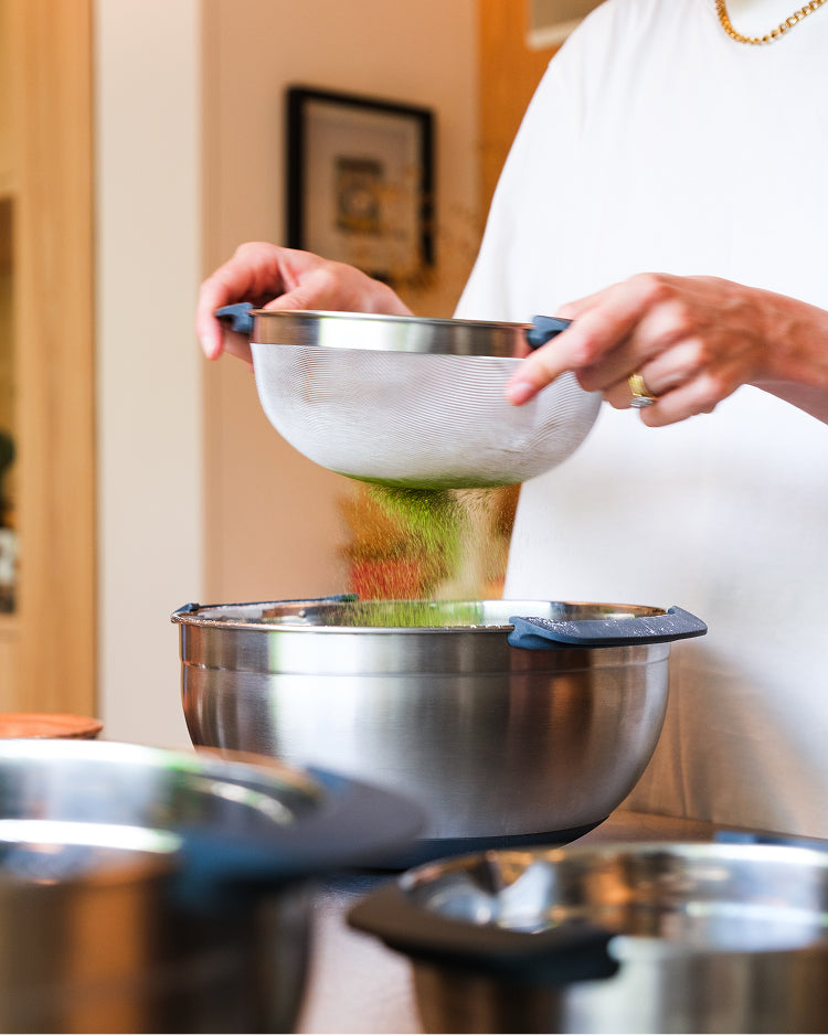 This stylish set includes 9 food preparation essentials that all stack neatly together so they take up less room in your cupboard.
