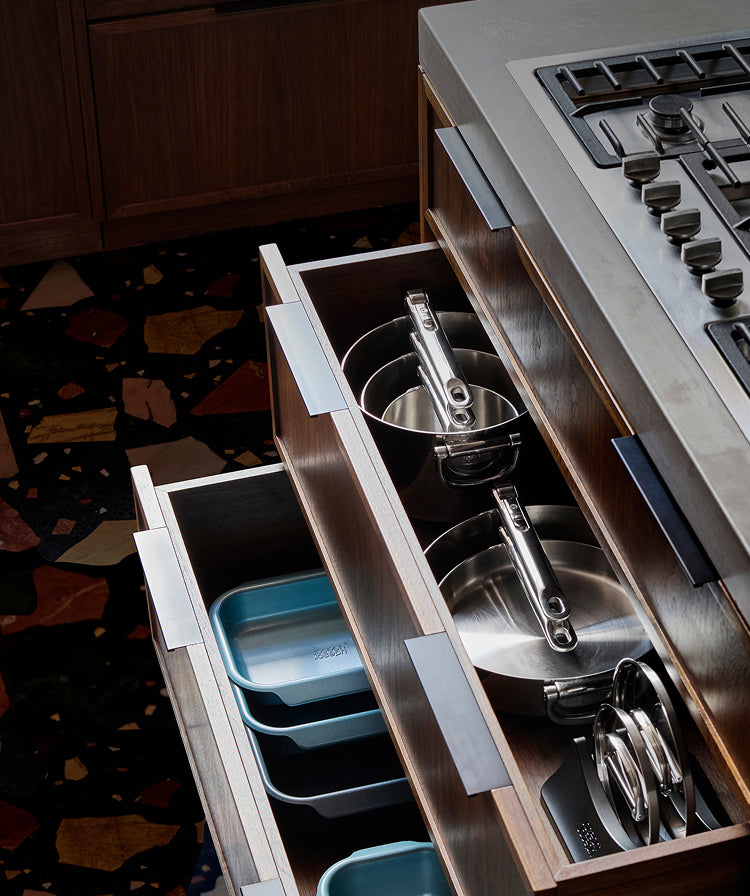 From folding handles to nesting designs, our professional-quality cookware is designed to take up to 50% less space in your cupboards.